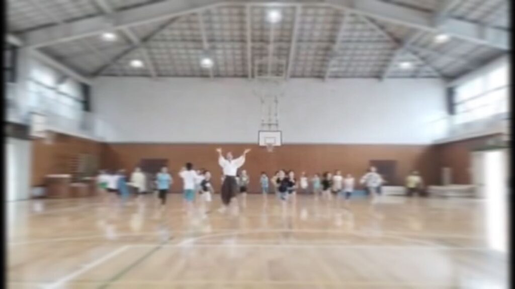 毎回30〜40人ほどの子どもたちを相手に号令です。