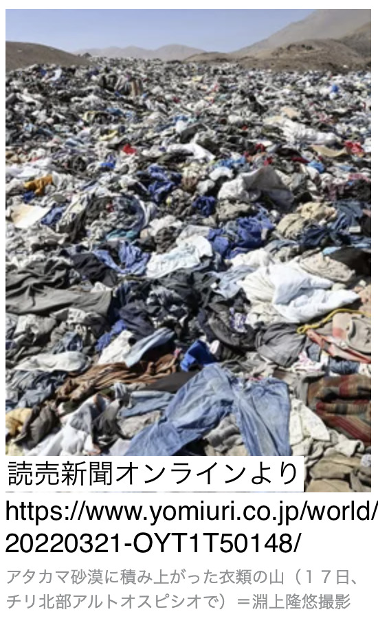 ファストファッションも影響、砂漠に広がる「衣類の墓場」(読売新聞)https://www.yomiuri.co.jp/world/20220321-OYT1T50148/